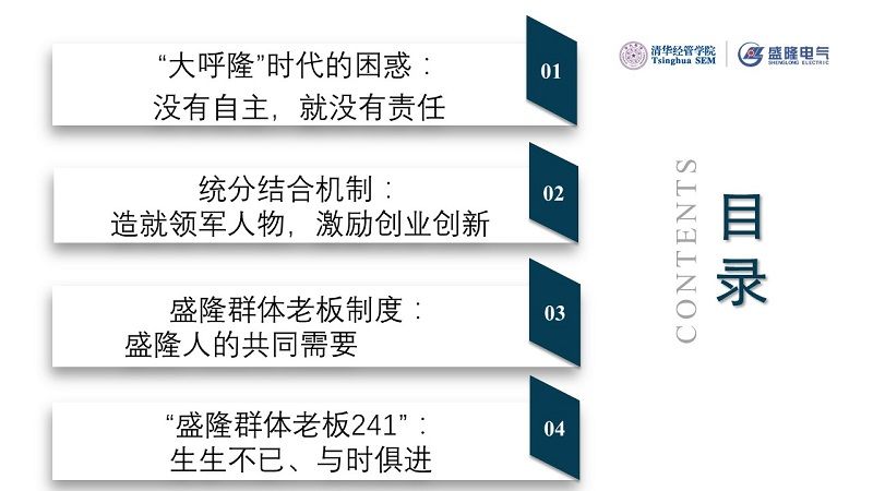 盛隆的群體老板案例,是由清華經管學院市場營銷系宋學寶教授主要開發的。該案例半年前已經納入我們的案例庫。稍后請謝董事長為我們介紹,之后有一個互動問答環節,由謝董事長和宋教授一起與大家互動。下面有請謝董事長為我們講一講盛隆電氣的故事。