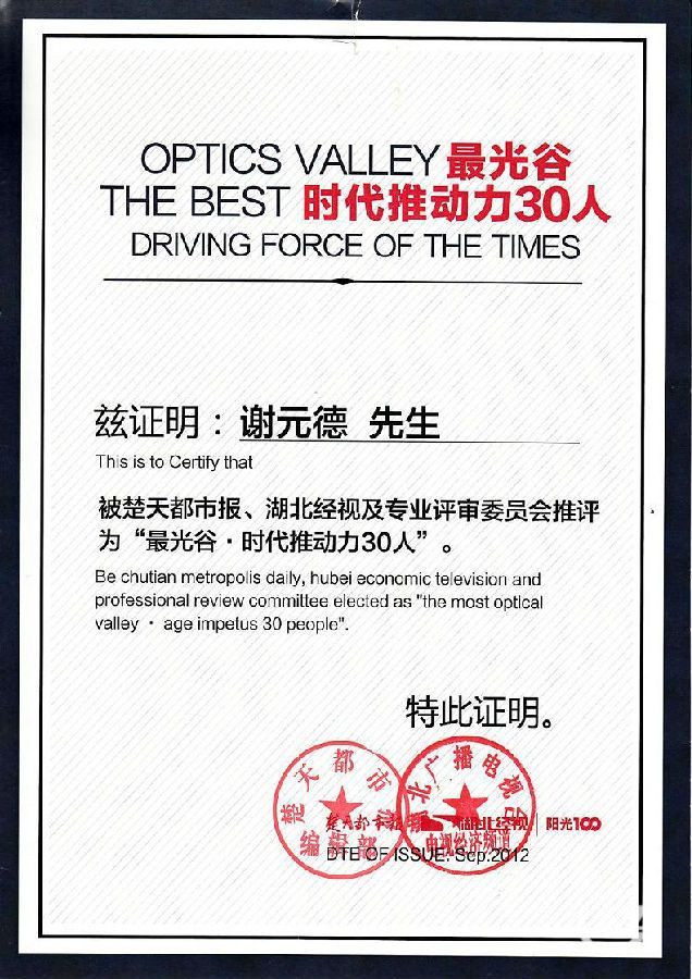 (楚天都市報 2012.9.21 “最光谷·時代推動力30人”評選結(jié)果出爐)