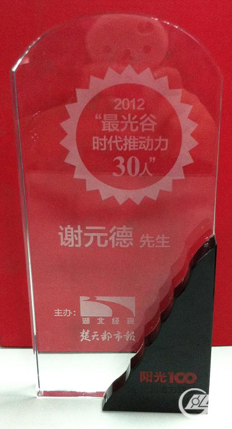 9月20日晚,第2012“最光谷?時代推動力30人”頒獎盛典在光谷湯遜湖畔陽光100大湖隆重舉行。該活動由楚天都市報、湖北經(jīng)濟電視臺聯(lián)合陽光100置業(yè)集團主辦。自7月份啟動后,經(jīng)過先后三輪的嚴格篩選,最終評出了30位“最光谷?時代推動力”人物,我公司謝元德董事長成功當(dāng)選。
