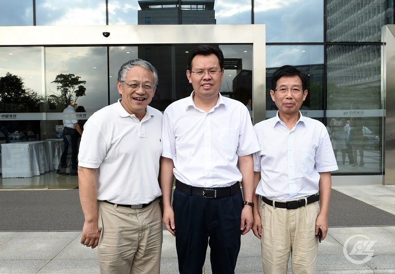 武漢當代集團創始人艾路明,市委常委、東湖高新區黨工委書記程用文,盛隆電氣董事長謝元德(從左至右)合影