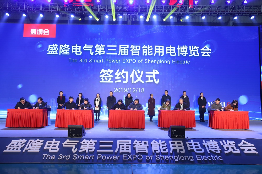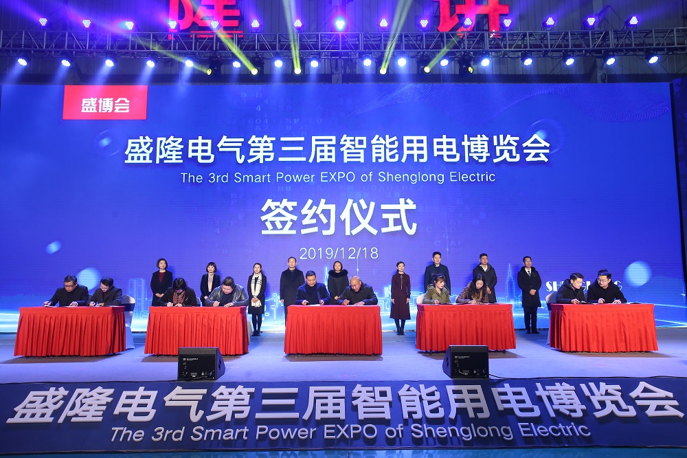 12月18日,盛隆電氣第三屆智能用電博覽會盛大開幕。現場舉行答謝客戶儀式,“盛隆答謝代表團” 上臺,答謝全體客戶,并向十大客戶代表贈送“智能用電保證20年無償技術服務承諾書”。