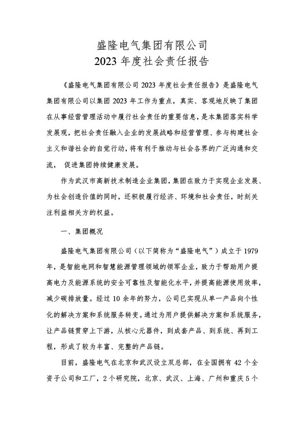 盛隆電氣集團有限公司 2023年度社會責任報告