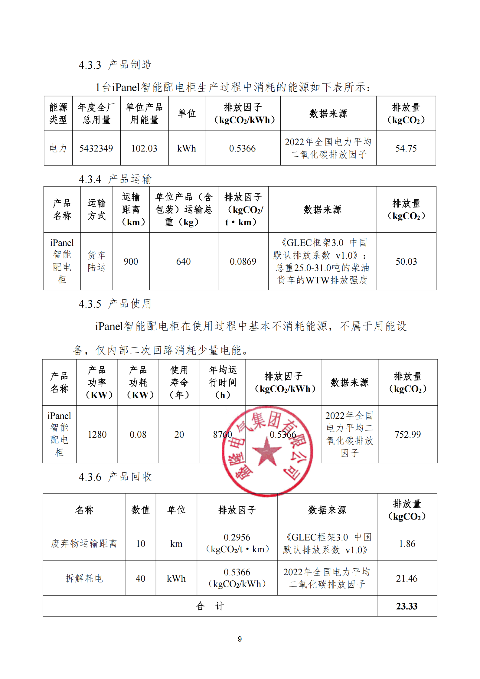 盛隆電氣集團有限公司2024年度產品碳足跡分析報告