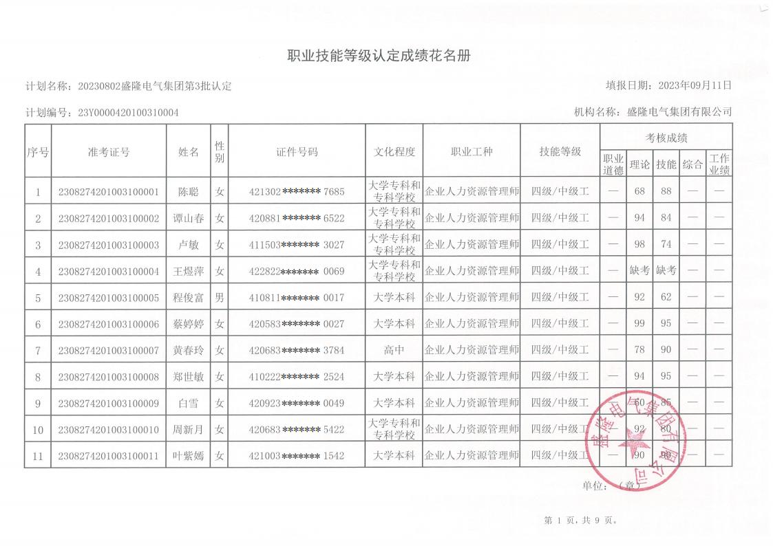 盛隆電氣集團2023年第六批職業技能等級認定成績公示
