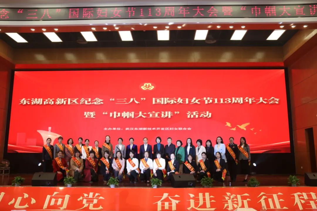 3月7日,武漢東湖高新區(qū)舉行紀(jì)念“三八”國(guó)際婦女節(jié)113周年大會(huì)暨“巾幗大宣講”活動(dòng)。智慧工廠副總經(jīng)理董玲獲“新時(shí)代巾幗英雄”稱(chēng)號(hào),并作事跡宣講。湖北省婦聯(lián)黨組成員、副主席李燕出席并講話(huà),武漢市婦聯(lián)黨組書(shū)記、主席魏靜出席,東湖高新區(qū)黨工委委員、管委會(huì)副主任沈陽(yáng)東致辭。獲獎(jiǎng)?wù)吆嫌埃ǘ釣榍芭庞宜模┒幔ㄖ校?..2023-03-08